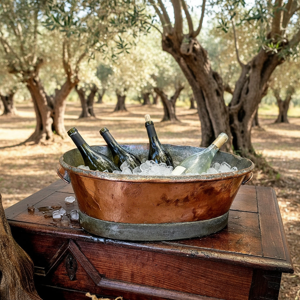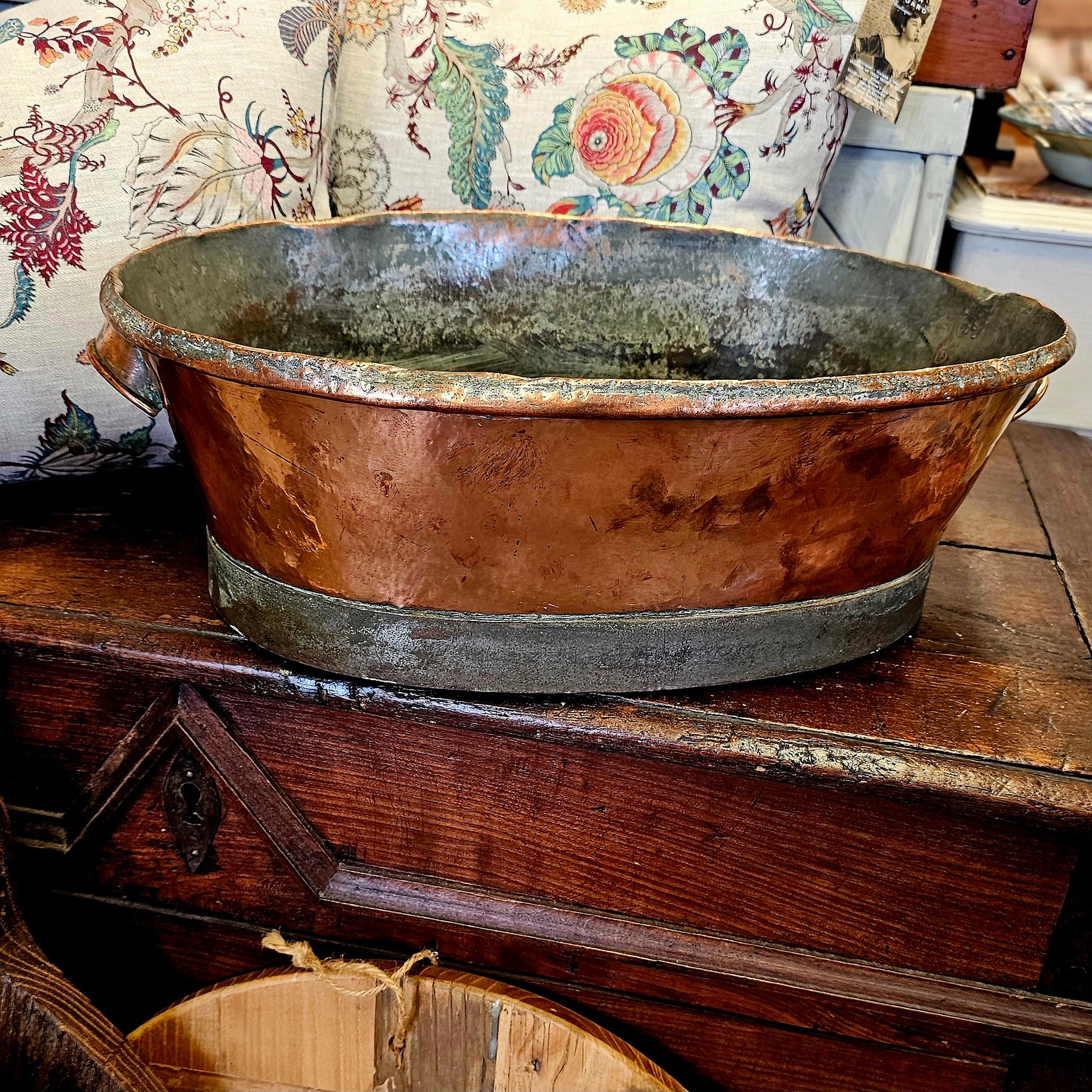 Gorgeous antique French copper baby bath, dating late 1700's. First one we've ever found. Many uses, orchids, plants, chill drinks