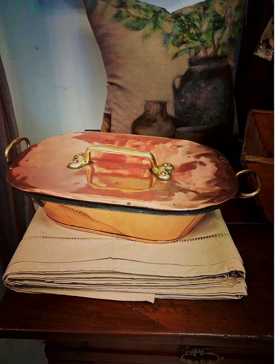 Found in central France, a daubiere is to cook predominantly Provencal daube (slow cooked beef with herbs, wine and vegetables). A beautiful piece of antique copper