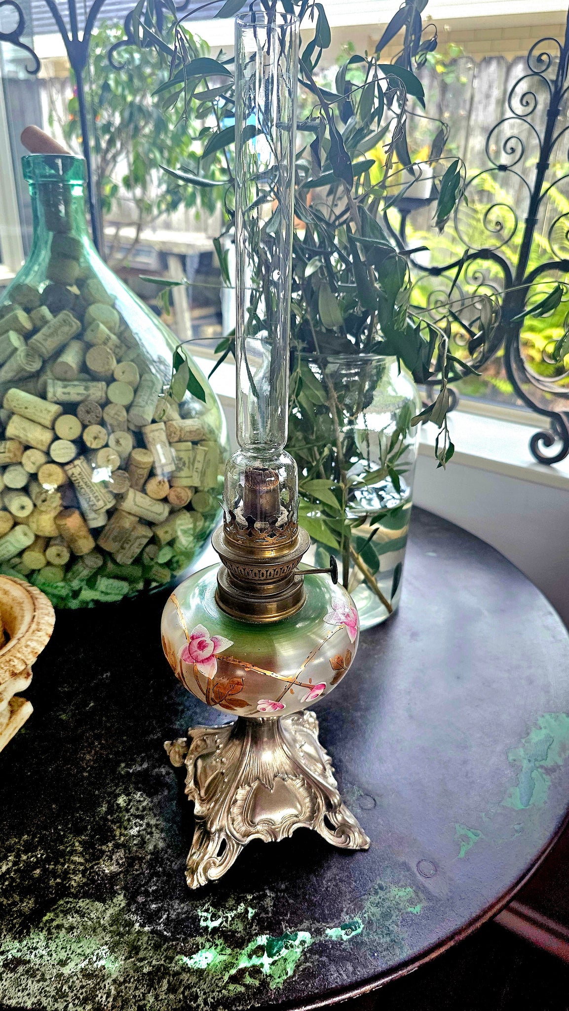 Beautiful antique oil lamp dating around 1900, from Limoges. France